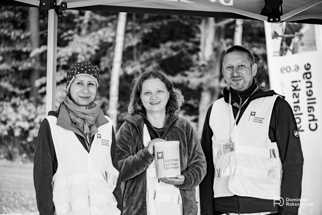 Było wilgotno, zimno i pochmurno, ale nie było ponuro. Grzał nas szczytny cel, a gdyby tego było komuś mało, to zagrzewał do walki Robert Makłowicz swoimi, jakże charakterystycznymi, a wcześniej nagranymi, komentarzami. Na krótko odwiedził nas Gabriel Olech ze swoim Tatą. Był z nami Przemysław Niemiec, który wcześniej poprowadził dla chętnych coffee ride po okolicy.