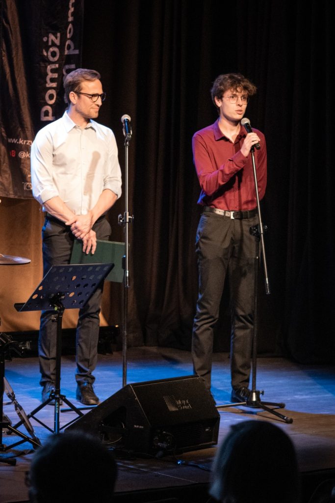 Przed i po aukcji zagrali André Bachleda (gitary, śpiew) z zespołem w składzie: Mateusz Pałka (fortepian), Maciej Adamczak (kontrabas) i Dawid Fortuna (perkusja). Kto został na drugą część koncertu, po aukcji, z pewnością nie żałował, bo był to występ znakomity. Muzyka płynąca ze sceny była i wesoła, i liryczna; i folkowa i jazzowa, ale zawsze na najwyższym poziomie instrumentalnym i wokalnym. André Bachleda śpiewał po polsku (a fragmentami po góralsku), po angielsku i po francusku: bawiąc, dając do myślenia i wzruszając.